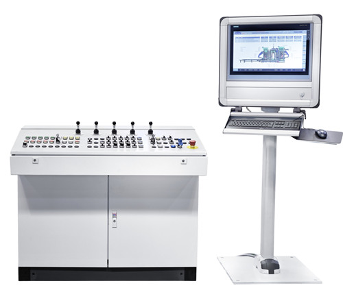 Trykhovedet, formrammen, aggregatvognen og stofvognen styres af Tamperhovedet, formrammen, foderboksen til basisblanding og ansigtsblanding styres af