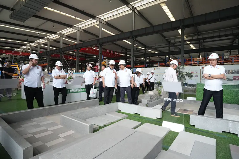 I udstillingsområdet for murstensprøver tiltrak forskellige permeable mursten, imiterede stenmursten og fast affald, genbrugsbyggematerialer den besøgende gruppes opmærksomhed. Fu Binghuang, formand for Quangong Machinery Co., Ltd., forklarede, at Quangong Machinery Co., Ltd gennem teknologisk forskning og udvikling. omdanner affald som byggeaffald og tailings til miljøvenlige byggematerialer med høj værditilvækst og bortskaffer over 10 millioner tons fast affald årligt. Formand Liu Guoquan inspicerede murstensprøvernes styrke og permeabilitet og roste QGM's praksis med at "forvandle affald til skat" som en "model for den cirkulære økonomi."