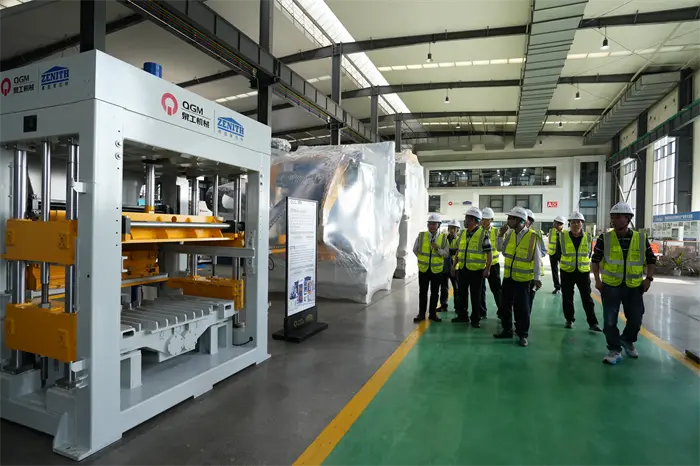 Bagefter bevægede gæsterne sig til udstillingsområdet for murstensprøver og så forskellige højkvalitets permeable mursten, fortovssten, blokke og andre produkter produceret af QGM-udstyr, og udtrykte stor interesse for virksomhedens "fast affaldsgenanvendelse" teknologiske resultater. I udstillingsområdet for murstensfremstillingsudstyr inspicerede formand Lin Boqian og hans parti kerneudstyret, såsom den fuldautomatiske blokformningsmaskine og intelligente produktionslinje uafhængigt udviklet af QGM, og udvekslede tekniske fordele og markedsapplikationsmuligheder på stedet. Formand Lin Bo bekræftede fuldt ud de fremragende bidrag fra QGM inden for high-end udstyrsfremstilling og grønne byggematerialer og understregede: "QGM er en innovativ model af private virksomheder i Quanzhou. Vi håber yderligere at spille sammenslutningens rolle som en bro i fremtiden, fremme den koordinerede udvikling af industrikæden" og hjælpe "Quanzhou Smart go Manufacturingzhou." Vicegeneraldirektør Fu Huabin svarede, at virksomheden vil fortsætte med at øge investeringerne i forskning og udvikling og arbejde med partnere fra alle samfundslag for at udforske nye muligheder for integreret udvikling af intelligent udstyr og grøn fremstilling.