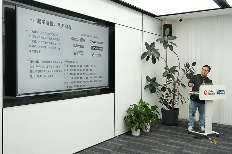 I konferencelokalet forklarede personalet fra udstyrssektionen i Quanzhou kommunale kontor for industri og informationsteknologi den grundlæggende situation, udviklingshistorie og fremtidsudsigter for Quanzhous udstyrsfremstillingsindustri; en salgsfremmende video af Quanzhou Machinery Industry Co., Ltd. blev også vist.