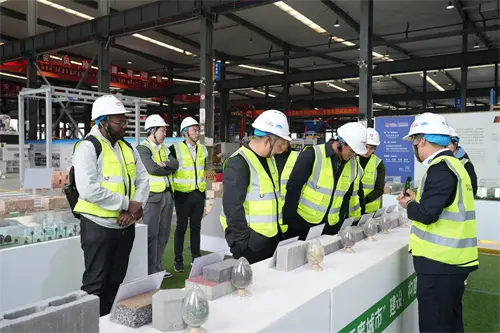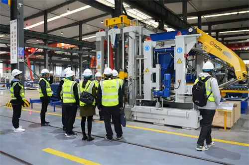 Indtastning af det intelligente produktionsværksted for QMG, observerede besøgende den fuldautomatiske blokformende maskine på tæt hold. Maskinkroppen, der vejer hundreder af tons, det hydrauliske system med præcisionstransmission, formenheden med tilpasselig skift ... "Dette udstyr tilpasser sig hurtigt kundens behov gennem modulært design. Vicepræsidenten og hans parti, der er meget anerkendt, har QMG-dobbeltdrevet model af QMG's" udstyr + bygningsmaterialer ":" Fra at sælge udstyr til levering af samlede løsninger, QMG har virkelig åbnet Green Building Materials. "