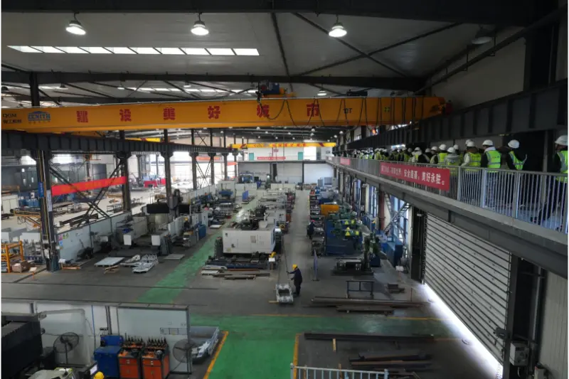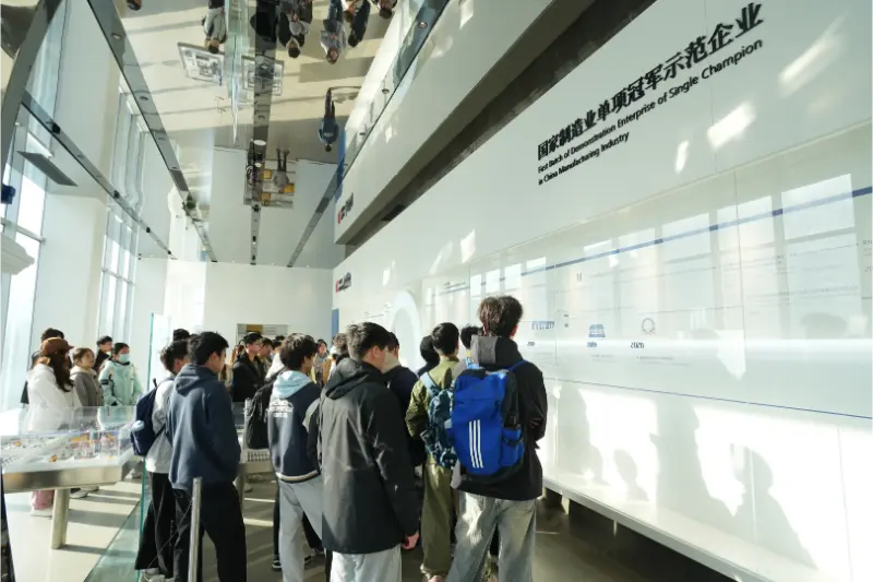 Efterfølgende besøgte lærerne og eleverne bearbejdningsværkstedet og trådte ind i frontlinjen for intelligent fremstilling. På værkstedet kørte CNC-bearbejdningscentre og automatiserede samlebånd med høj hastighed, robotarme, der præcist fuldfører forskellige operationer, og det digitale produktionssystem viste produktionsfremskridt og kvalitetsovervågningsdata i realtid, hvilket demonstrerede den synergistiske effekt af en "grøn fabrik" og "intelligent værksted." Virksomhedens tekniske eksperter førte lærere og elever gennem hele processen fra råmaterialebearbejdning til montering af udstyr, med fokus på at forklare anvendelsen af nøgleteknologier såsom sammenkobling af CNC-udstyr og præcis produktionsstatusregistrering. De studerende engagerede sig aktivt med de tekniske eksperter, diskuterede spørgsmål som behandlingsoptimering og udstyrsvedligeholdelsesteknikker, hvilket skabte en stærk læringsstemning på stedet.